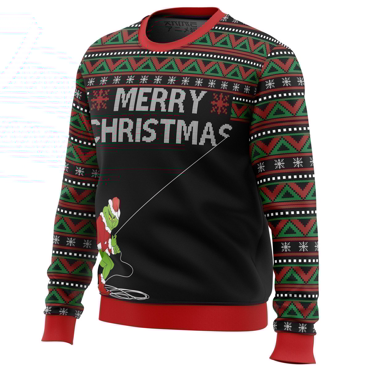 The quirky design and vibrant colors capture the essence of the Grinch's mischievous spirit. Spread the holiday cheer and wear the whimsy with this iconic ugly Christmas sweater that promises smiles and laughter